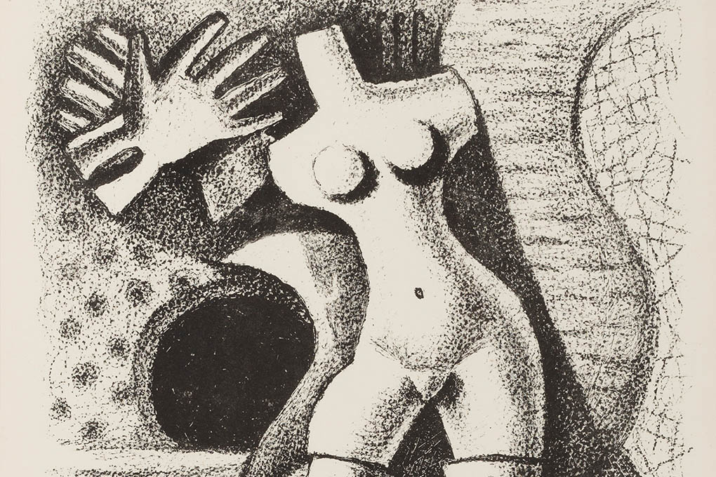 Artista comprometida con la República, se exilia en Argentina durante la Guerra Civil española. En este grabado aparece una figura de rasgos femeninos completamente deconstruídos en un entorno indeterminado, donde se observan influencias de su relación con René Magritte, Max Ernst y Giorgio de Chirico.