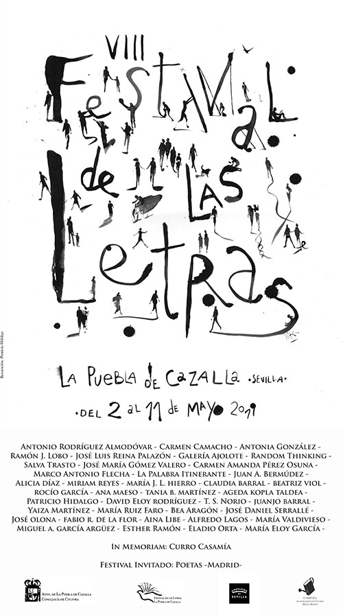 En definitiva, en un tiempo, como el que vivimos, difícil para la Cultura, desde el Ayuntamiento de La Puebla de Cazalla entendemos que es ahora más necesario que nunca poner en acción a la Cultura en su dimensión social, propiciar que las palabras nos saquen de los adentros lo que nos queda de “pueblo”, como decían y nos siguen diciendo Antonio Machado y Agustín García Calvo. Desde esa sensibilidad y gracias a la complicidad y la generosidad de los artistas y escritores invitados, los Festivales de las Letras de La Puebla de Cazalla serán posibles, y toda la gente que quiera acercarse podrá disfrutar, aprender y salir de aquí con algún pellizco en sus conciencias y en sus corazones. En esa dirección, con paso arrojado e impreciso, caminamos, haciendo nuestras estas palabras del escritor argentino Juan José Saer: