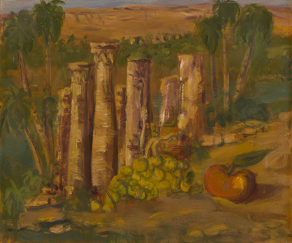 Se trata de dos obras de carácter figurativo. Paisajes de Egipto en los que se representa un entorno cargado de simbología, con un horizonte alto y elementos que aluden a lo exótico y a la riqueza del lugar, como las piezas de fruta monumentales, palmeras o elementos arquitectónicos propios del enclave que representa.