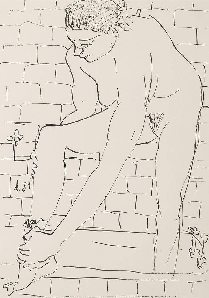 Esta obra se trata de otro desnudo, con la temática histórica de la salida del baño femenino. De cierto aire naif, Dokoupil no emplea recursos rocambolescos ni técnicas innovadoras en este caso, como es habitual en su obra, pero si alude a temáticas recurrentes y al dibujo como técnica de expresión, lo que le permite representar una imagen figurativa, muy bien resuelta, someramente, en la que su estilo queda patente.