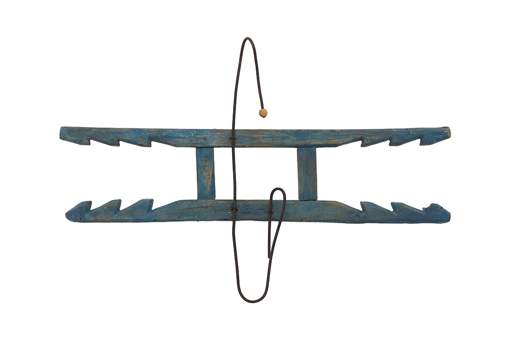 Podemos observar como a partir de varios listones de madera reconstruye cierta figuración abstraída a la que adjudicamos una morfología concreta apoyándonos en el título que le otorga el artista. Es destacable referirnos al inteligente uso de la cromía que hace, a partir de tonos naturales cuya intensidad crea sombras que delimitan los volúmenes, algo en lo que demuestra gran maestría, posiblemente por su gran dominio del arte vitral.