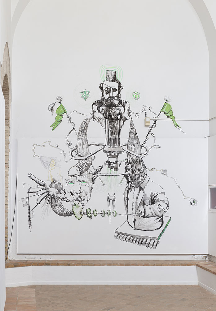 Entre los numerosos homenajes en forma de obra de arte con las que cuenta esta colección, cabría destacar por su talante afectivo esta pintura mural realizada por el joven artista Iván Izquierdo. La realidad es, que muchas de las obras con las que cuenta esta colección, son homenajes y dedicatorias que, de una forma u otra, han realizado artistas coetáneos a Francisco Moreno Galván, que lo conocieron y que quisieron dedicarle una obra bien durante su vida, o de forma póstuma, pero cobra una especial relevancia que, en el caso de los artistas jóvenes, nacidos poco antes de la muerte del artista morisco, su figura trascienda y sirva como fuente de inspiración.