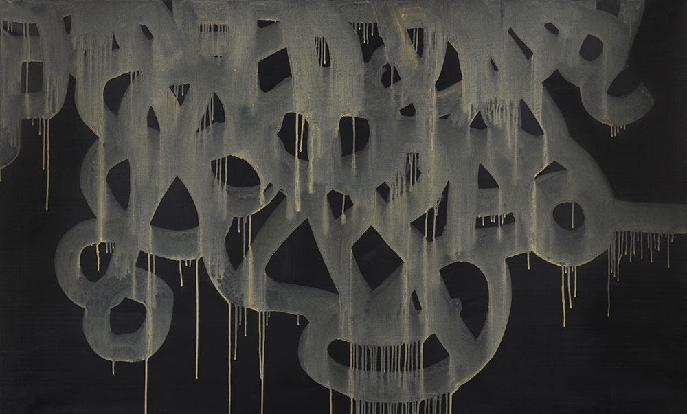 En esta obra, vemos como todas estas características diferenciantes están presentes. Sobre fondo de un solo color, una serie de trazos abstractos que deja fluir para dar protagonismo al factor fortuito. Una obra cargada de fuerza con un uso de recursos mínimos.