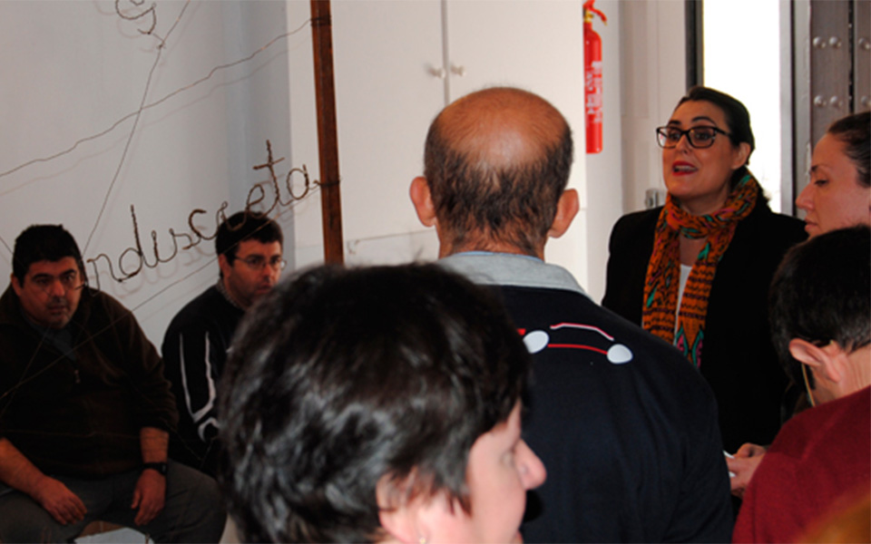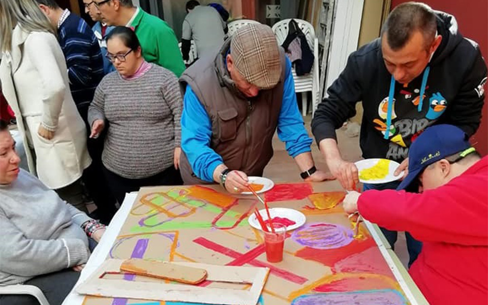 2. Usuarios/as del Centro Ocupacional llevan a cabo la interpretación de los proyectos propios realizado durante las Residencias Artísticas de La Puebla de Cazalla al Aula de Mayores.