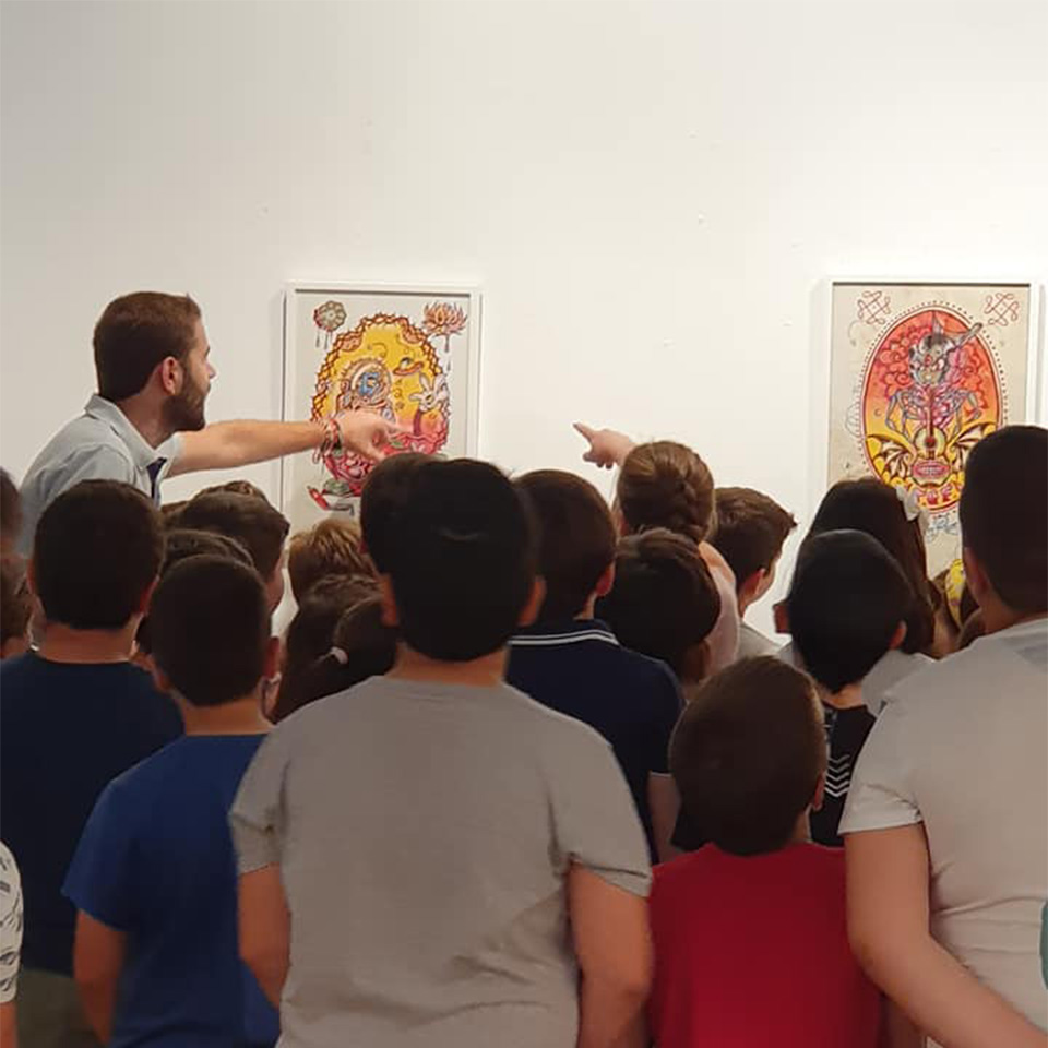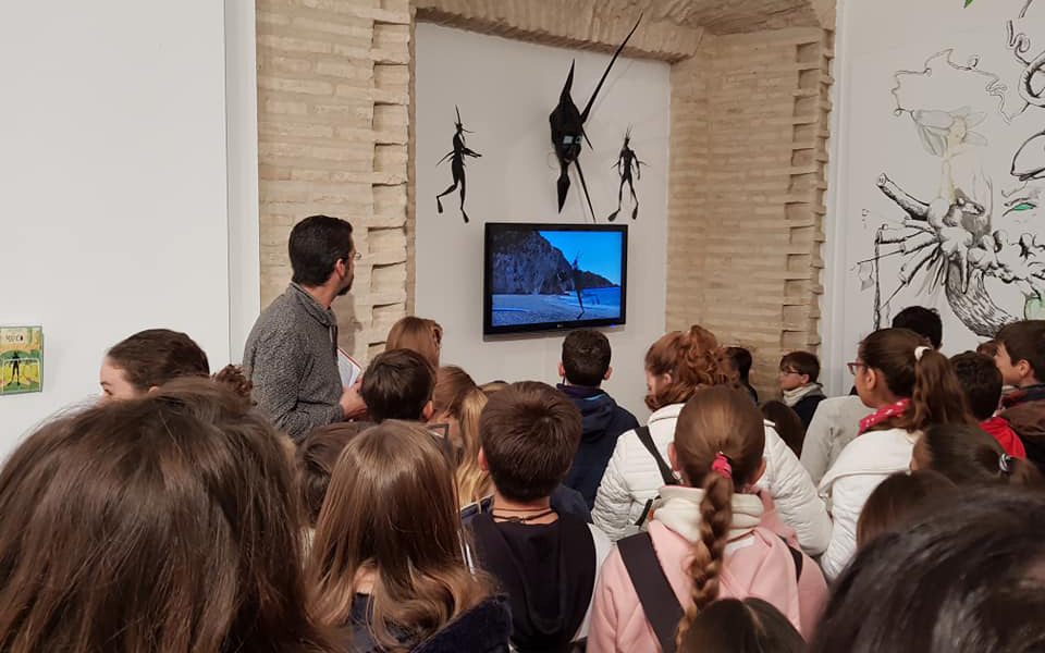 1. Interpretación de la exposición adaptada a grupos escolares, en la que se les presenta las nuevas creaciones artísticas surgidas de la mano de artistas del municipio.