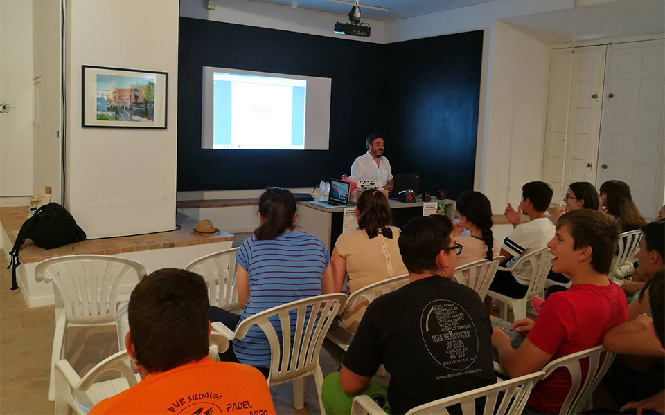 1. El propio director del proyecto artístico Scarpia, Miguel Ángel Moreno, da una conferencia a grupos escolares.