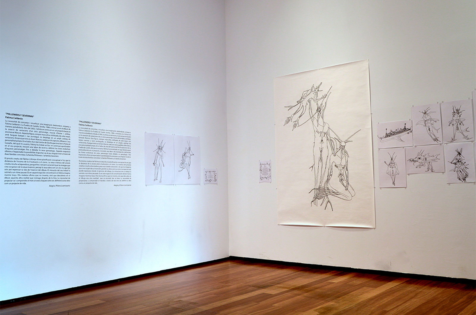 “Phllowers y Severinni” es la primera exposición individual de la artista. Una selección de sus dibujos y una videocreación de animación, sobre la vida de dos familias concretas, familia Phllowers y familia Severinni, ofrecen al espectador la posibilidad de asomarse a su singular mundo.